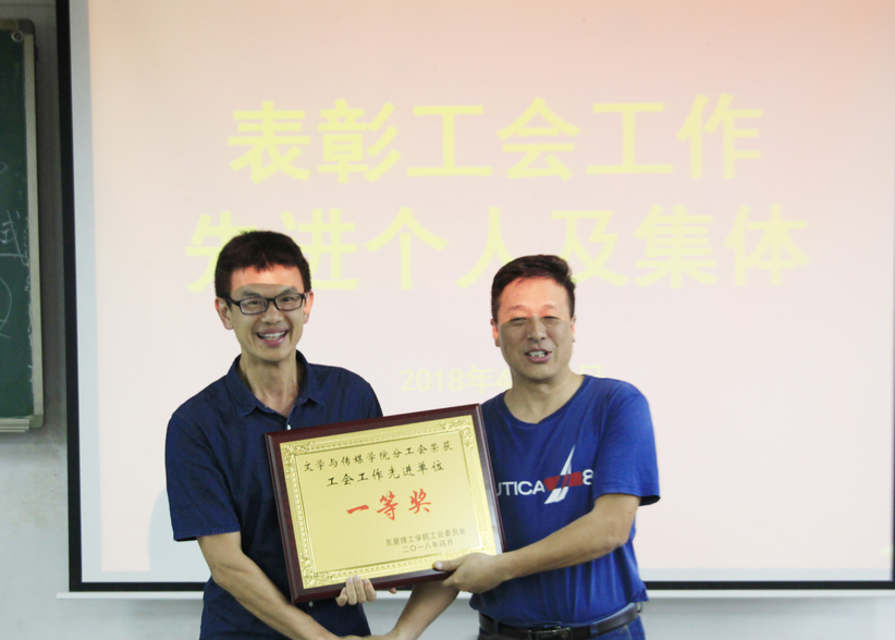 在五一劳动节前夕,学校工会举行工作总结和表彰大会,文传学院分工会一举获得全校工会工作先进单位综合评价第一名、“维权及民主管理奖”,“宣传报道奖”等多个荣誉。陈斌、周赛红、李绮贞、陈锐聪等分别获得校优秀社团骨干、工会工作积极分子及工作先进个人等称号。