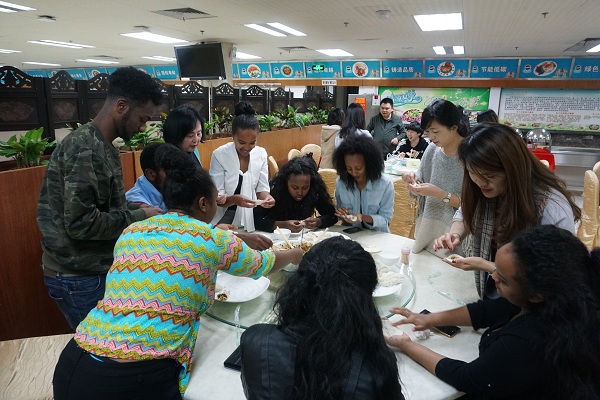 国际学院师生圣诞节包饺子贺新年