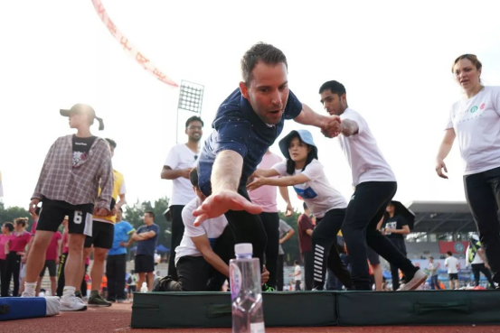 外籍老师也在校运会上一展风采,虽然他们有的是第一次参加趣味活动,但他们积极听取着在场人士给的意见,通过观看别的学院比赛中领悟到经验,全身心地投入到比赛中去,相信这也会是他们到中法联合学院之后不一样的体验。