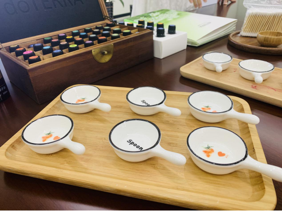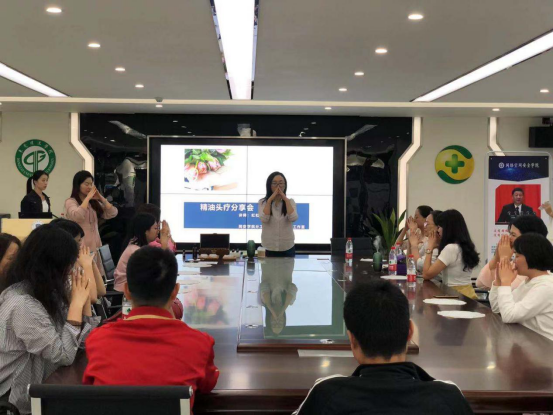 课程开始时,芳疗师虹虹先在介绍了几款精油的作用和用法,并讲授1次头部理疗的作用相当于2次身体护理,6次面部护理,10次足疗。在芳疗师的指导下,大家两两一组相互学习如何为对方做头部护理。
