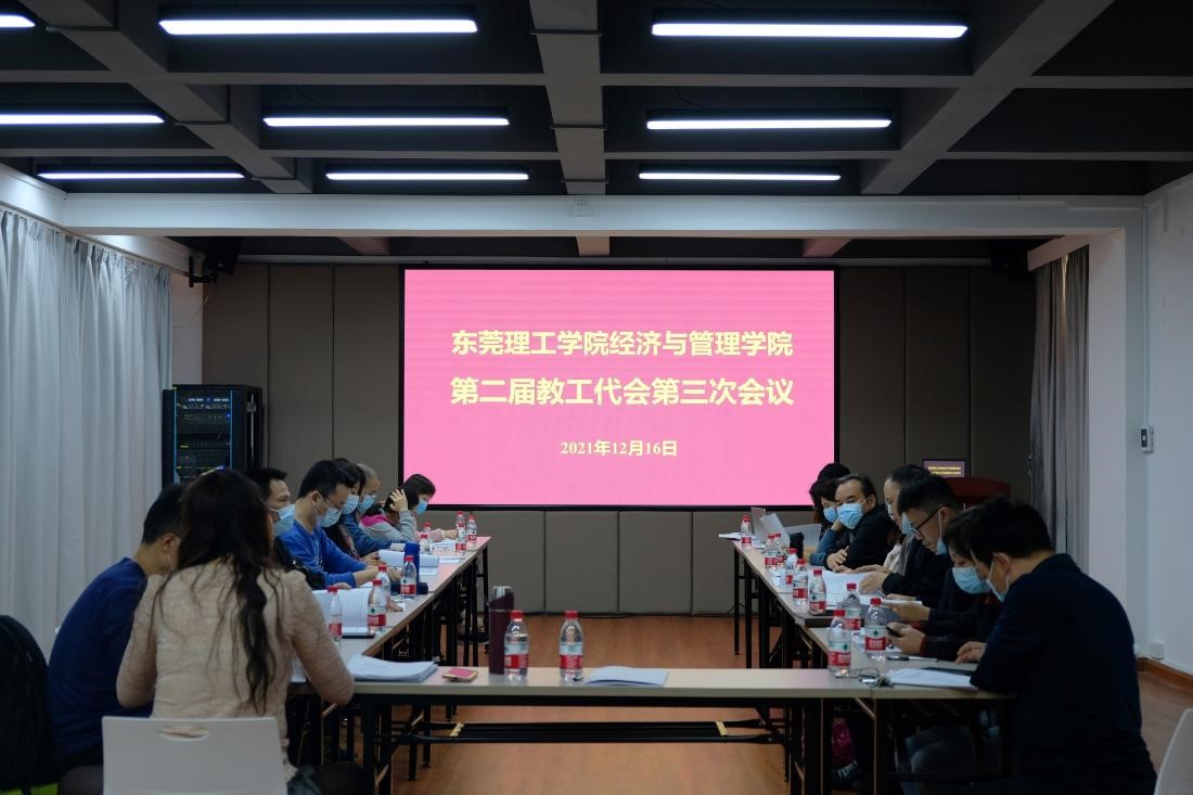 2021年12月16日,经济与管理学院第二届教代会第三次会议于莞城校区4520教工小家顺利召开。经济与管理学院党委书记杨继学、院长刘继云等22位代表出席了会议,学院党委副书记黄湘主持了会议。