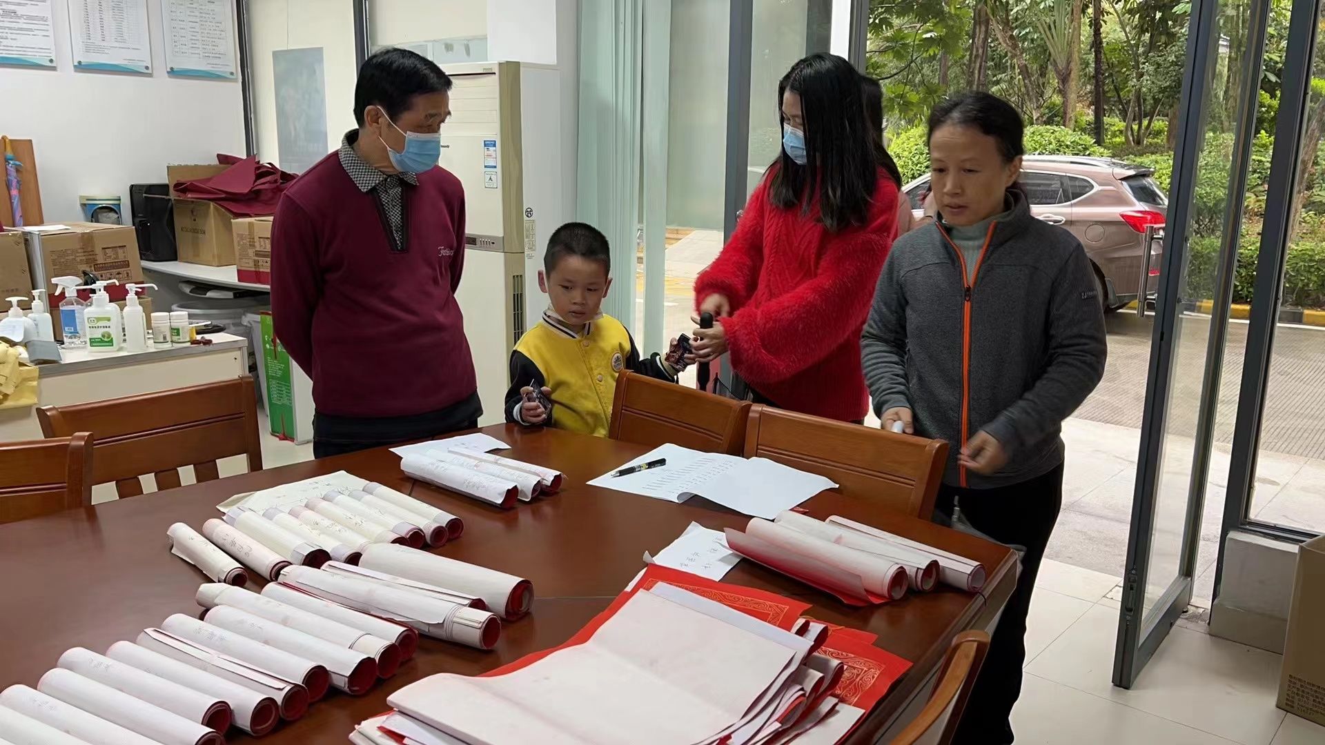 本次送春联活动由校工会主办、校教职工书画协会承办、校教师村业主委员会协办。校教职工书画协会的杨万江、杨继龙、李益民、宋跃、莫振轩五位老师,为全校教职工妙笔挥毫写春联。为了降低传染风险,本次活动采用线上的方式,老师们需提前在线上预订春联,同时还可以指定内容和写春联的书法家。