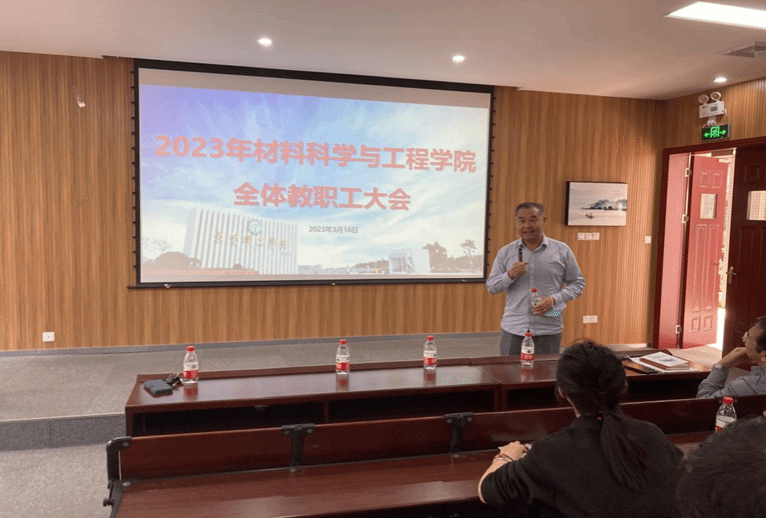 2023年3月16日,sunbet申博在4B212阶梯教室召开了全体教职工大会。会议由学院党委书记君光主持,全体教职工参加了会议。