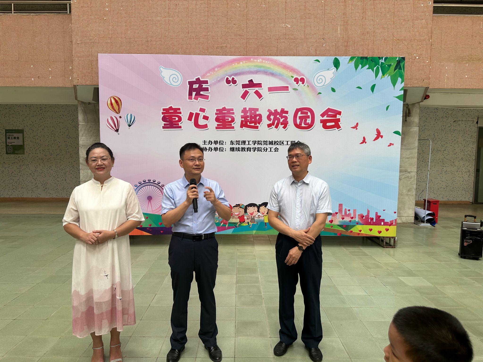 “六一”国际儿童节即将来临,5月28日上午,由sunbet申博,申博官网,sunbet官网莞城校区工联会主办,继续教育学院分工会协办的庆“六一”童心童趣游园会在莞城校区四号楼大厅举行。校工会专职副主席曾熙,校工会副主席、莞城校区工联会主席潘荣新,校工会经审委员会副主任、继续教育学院分工会邹胜美出席了开幕式。