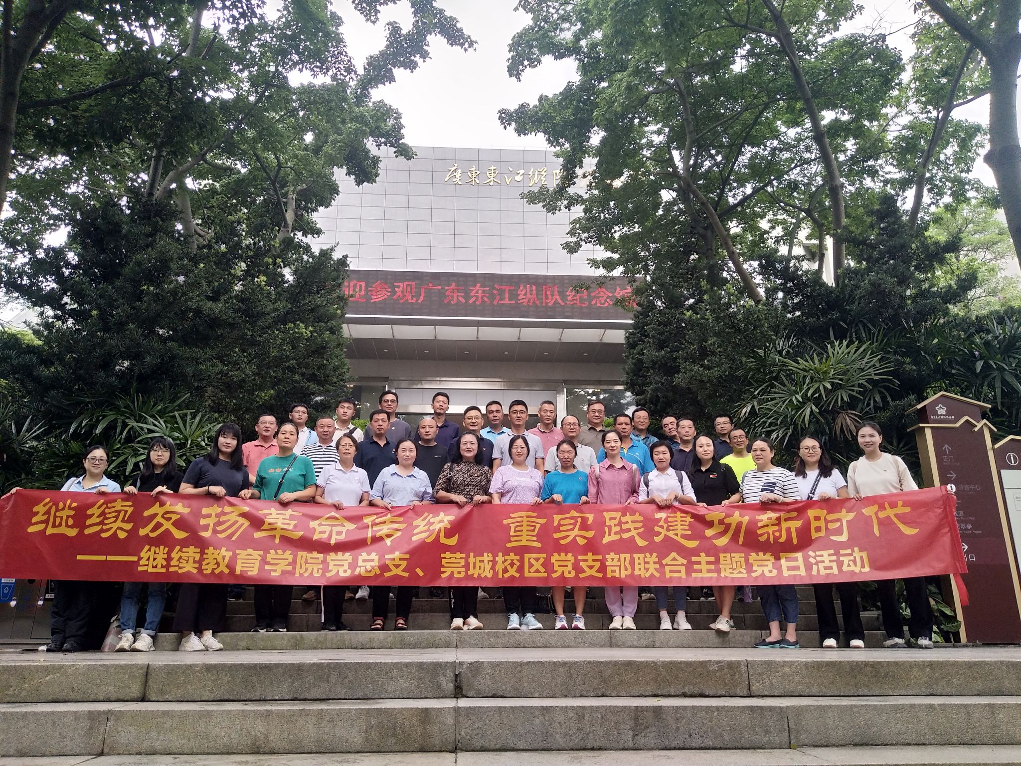 620日,莞城校区工联会组织继续教育学院党总支、莞城校区党支部联合开展革命传统教育主题党建+拓展活动。一行四十多人首先来到东江纵队纪念馆参观学习,重温入党誓词,坚定理想信念,凝聚奋进力量。参观结束后来到横岗水库户外营地拓展,进行了趣味比赛和游戏,气氛融洽诙谐。本次活动不仅提升了教职员工的精神和士气,也增强了莞城校区的凝聚力。