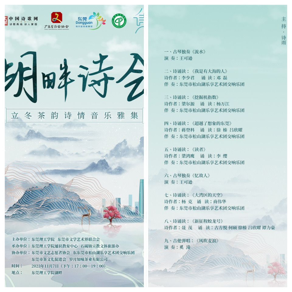 湖畔诗会是立冬茶韵诗情音乐雅集,融合了诗歌、音乐和茶文化等元素,旨在唤起诗人们内心深处的情感和灵感。