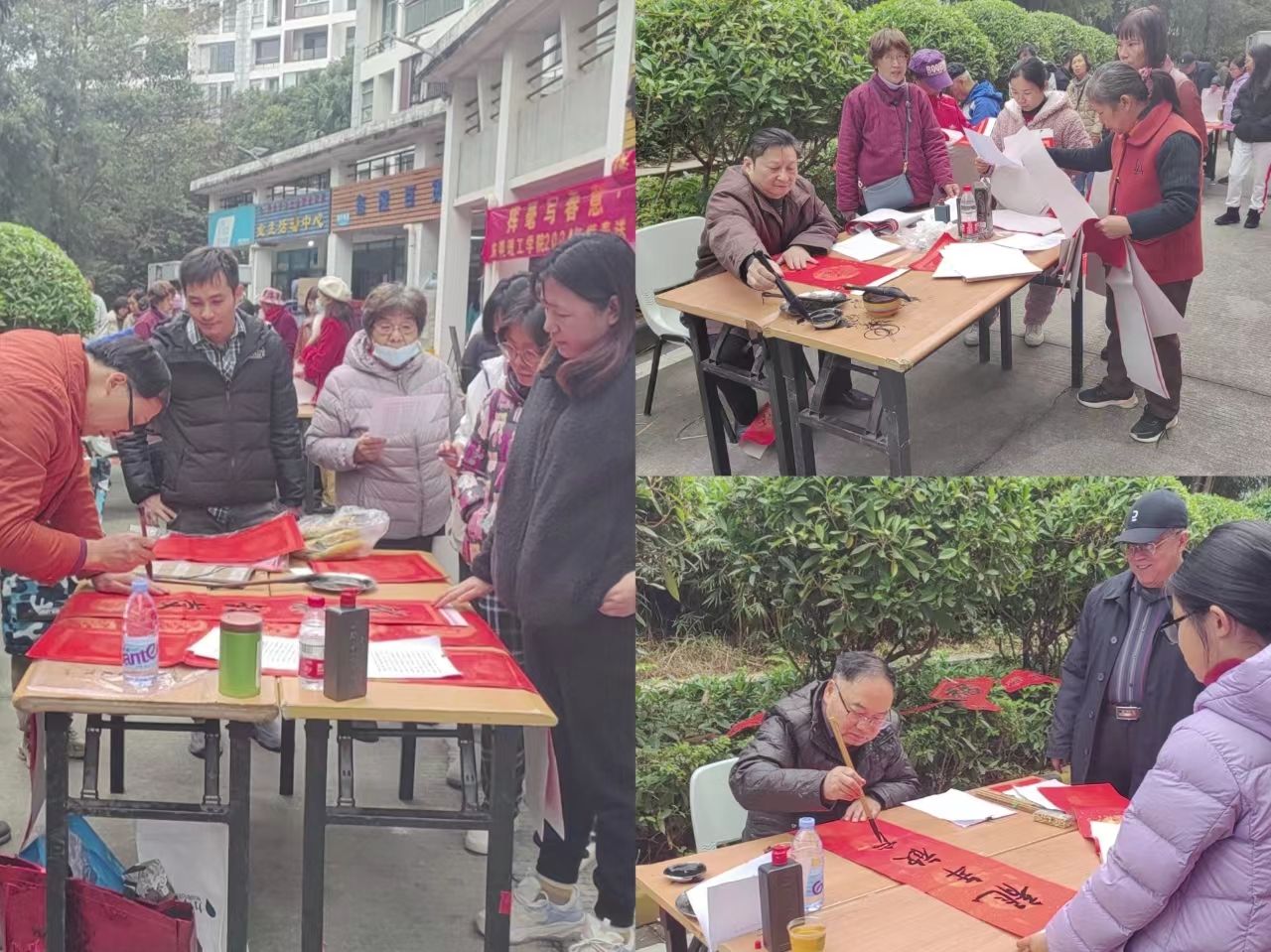 为了营造温馨祥和的节日气氛,给广大教师送上温馨的新春祝福,由由我校工会主办、校教职工书画协会承办、校业主委员会、天天向上物业公司协办的主题为“挥毫写春意,泼墨送祝福”的 2024年挥春送“福”迎新春送春联活动于2024年1月28日在松山湖教师村业主活动中心门前举行。