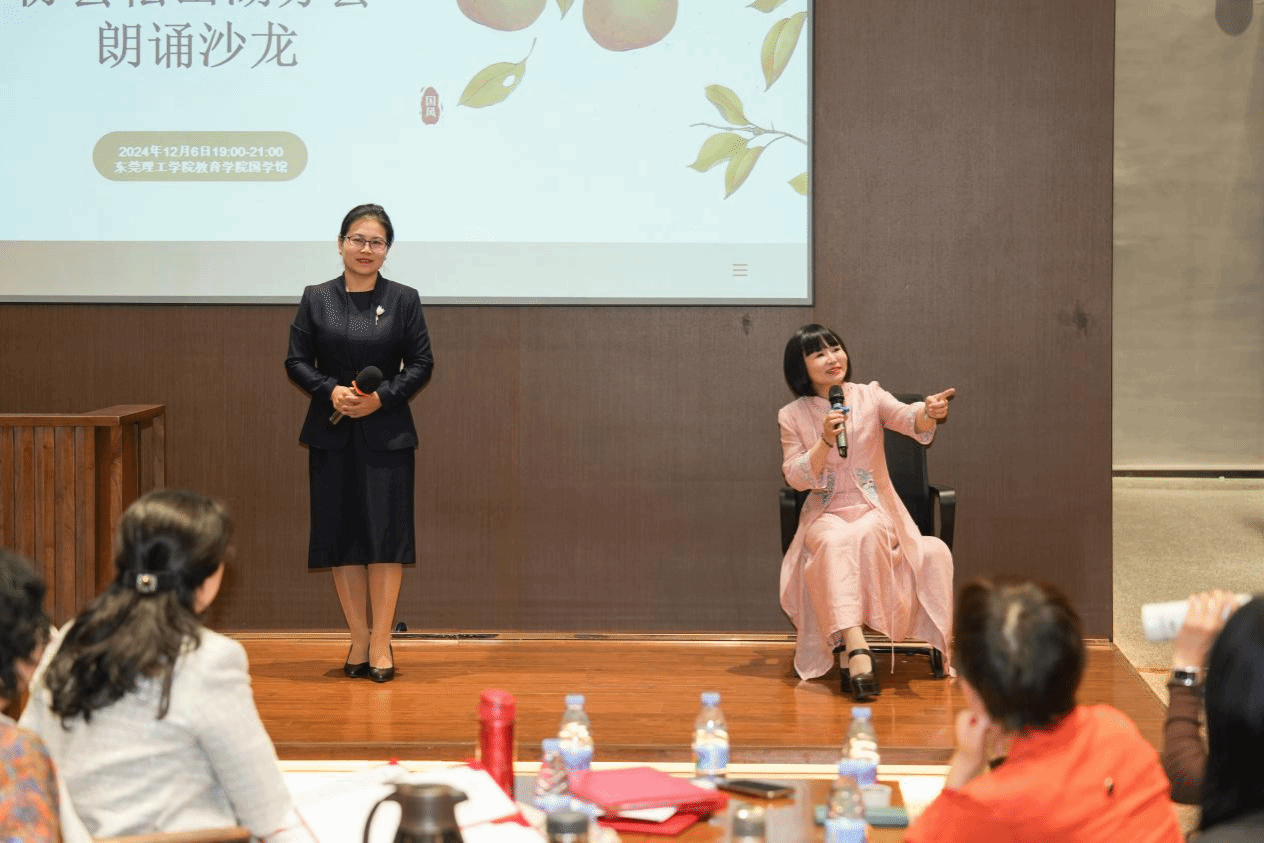 沙龙现场艺术气息浓郁、气氛热烈。松山湖朗诵艺术家协会会长李缨首先致词欢迎各朗诵爱好者齐聚我校,品诵诗文。