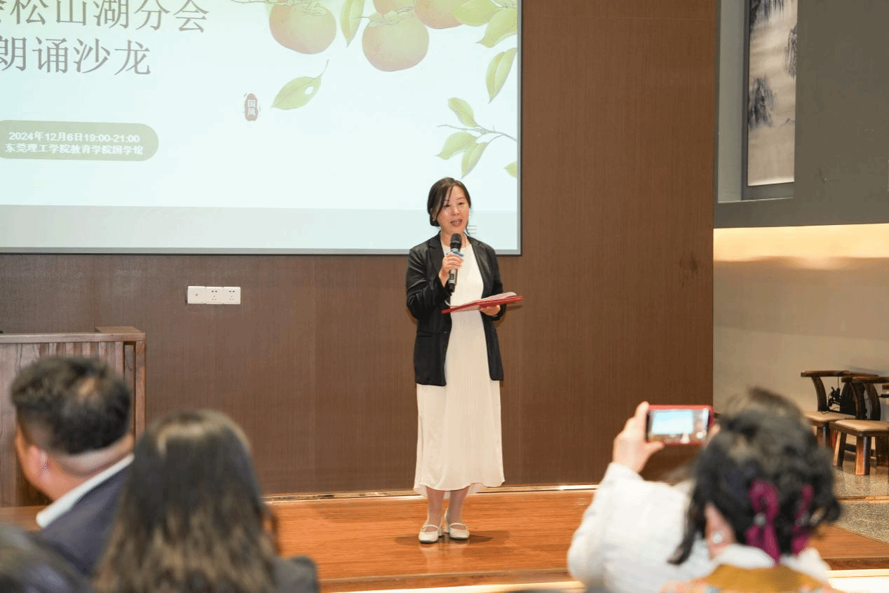 12月6日,时值二十四节气之大雪。晚上7点,教工朗诵协会邀请松山湖朗协及大朗朗协,在我校艺术楼国学馆,举办了一场别开生面的朗诵沙龙。