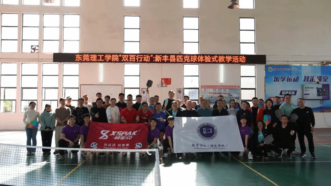 为深入贯彻落实广东省百校联百县助力 “百县千镇万村高质量发展工程”行动(简称“双百行动”),近日,匹克球协会苏敷志、廖国君两位老师先后率领我校大学生匹克球冠军团队走进韶关市新丰县,普及推广匹克球运动,助力当地体育文化建设,为 “双百行动” 奉献莞工力量。