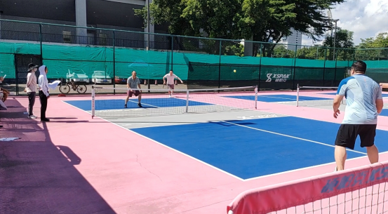 在校匹克球协会苏敷志会长统筹安排下,匹克球协会秘书长冯丽霞为新丰体校一行详细讲解了匹克球规则及战术要点,廖国君教练带领新丰县教练员们进行匹克球技术训练,并作匹克球比赛与裁判实操。