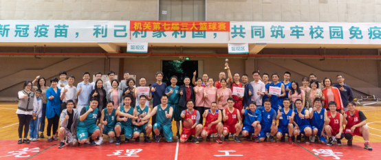 11月18日,机关党委、机关分工会主办的机关第七届三人篮球赛圆满落幕。经过激烈角逐,男子组尖刀队夺得本次比赛冠军、双工联队亚军、高建尖兵队季军;女子和中层以上干部组定点投篮尖刀队、双工联队并列夺得冠军。比赛受到了学校领导及广大机关教职员工欢迎。学校党委书记成洪波作为高建尖兵队队员参加了三个场次比赛,并在决赛后向冠军队颁奖。
