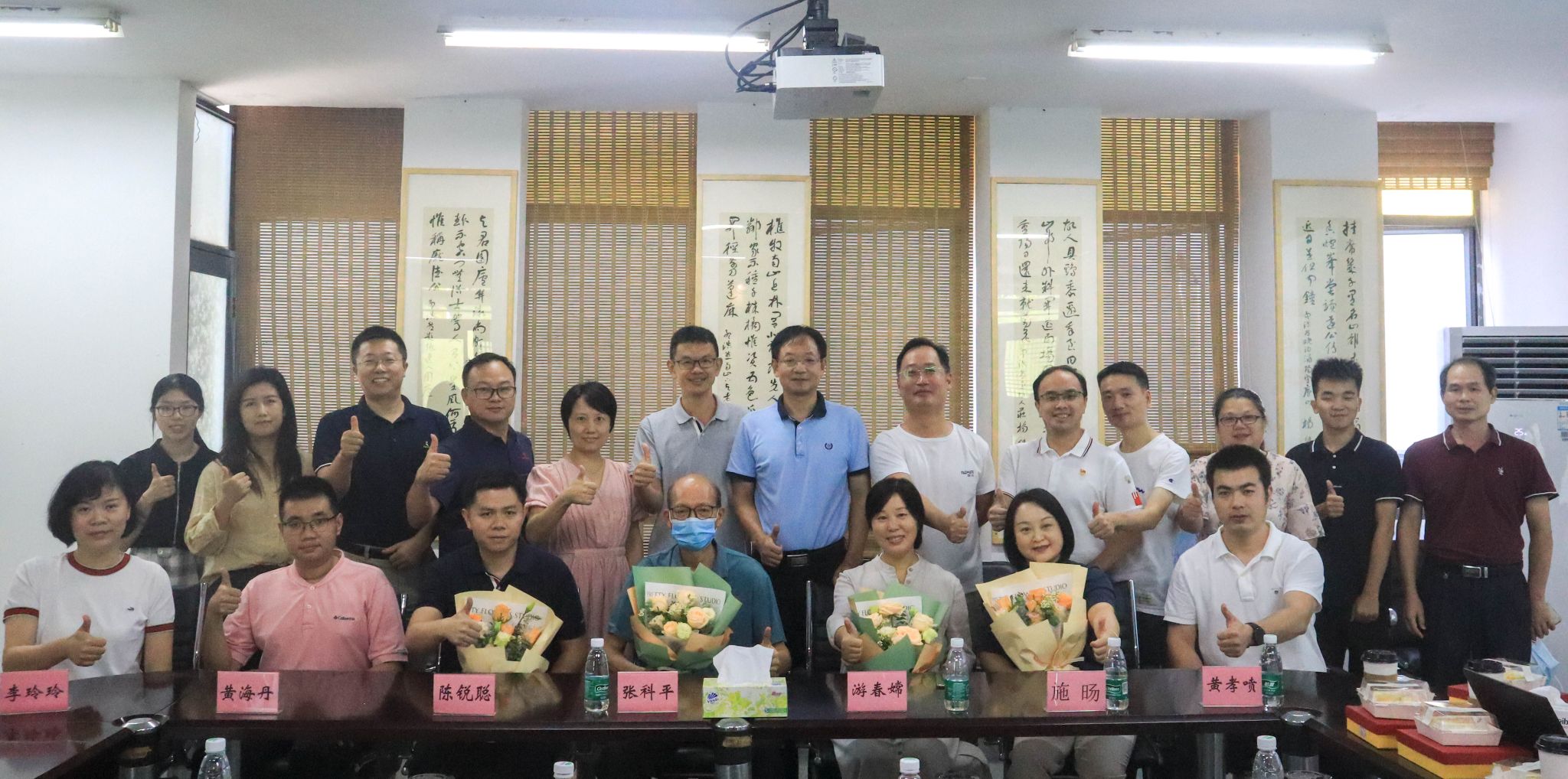 随后,新进教职工向荣休与调离的老师们献花,阎江书记为他们颁发情义深厚的独具特色的工作纪年铭牌和礼品。大家一起合影留念,享受茶歇时光,气氛融洽。