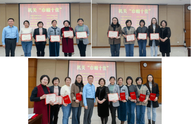 会议首先宣读了《关于表彰 2024 年度机关“巾帼十佳”及机关“优秀女职工”的决定》,授予叶妙娴、罗月婷等10名同志机关“巾帼十佳”荣誉称号;授予贾茹、叶嘉文等32名同志2024年度机关“优秀女职工”荣誉称号。校工会、校妇委会、机关党委及机关分工会领导为获得荣誉称号的个人颁发荣誉证书。